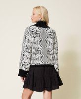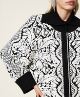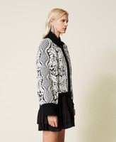 Viscose blend and lurex chenille jacquard jacket with floral pattern, snap buttons, lining.