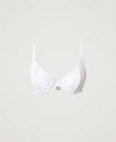 Jacquard underwire bikini top with lurex Oval T all over, detachable padded cups, removable shoulder straps.