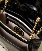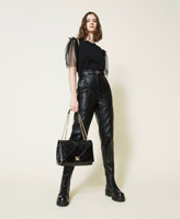 Large 'Cara'shoulder bag made from glossy full grain Italian calfskin with diamond quilting and stud with logo. Twinset brings its message of kindness and welcome in all languages of the world: 'Cara' means 'darling' in Italian.