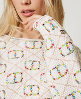 You choose how to wear this printed cotton moss stitch jumper with boatneck: as a jumper or cardigan. Loose fit, long sleeves with slightly slouched shoulders, hidden snap button closure, ribbed trim on hem and printed cuffs, Oval T logo plate at the hem.
