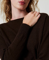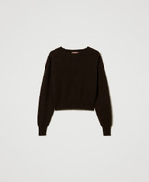 Cashmere plain knit jumper made in Italy with crew neck, long sleeves and ribbed trims, Oval T logo openwork at the back, loose fit.