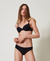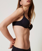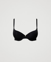 Push-up bra made from microfibre charmeuse, padded and breathable non-removable cups. Internal elastic below the cups, covered shoulder straps with rings at the front and adjustable logoed elastic at the back, two-hook fastening, logo print at the side, pearl between the cups.