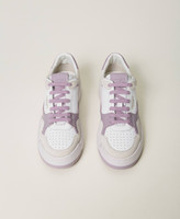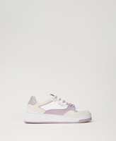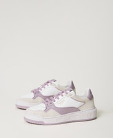 Leather trainers with colour block, contrasting lettering logo and rubber sole.