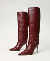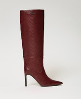 High boots with crocodile print and inner zip, drainpipe leg, stiletto heel and tunit sole.