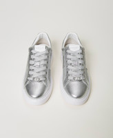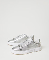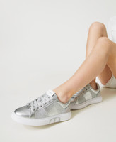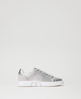 Laminated trainers with glitter inserts, contrasting Oval T logo print on the side, rubber sole.