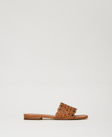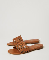 Elevate your style with these leather slides with decorative lasered motifs on the band and tunit sole. Perfect for adding a sophisticated note to short-and-top outfits.