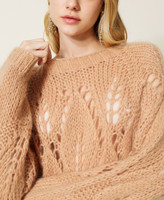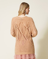 Openwork mohair blend maxi jumper with raglan shoulders, ribbed hem, oversized fit.