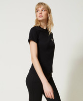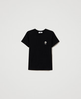 Cotton jersey regular fit t-shirt with rubberised daisy print, ribbed round neck and short sleeves.