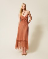 Dresses for women by Twinset: they will win you over with their original and feminine prints, floral patterns, shiny sequins, sophisticated appliqués, and a wide and truly inspiring choice of colours. In this collection you will find a wide range of women’s dresses that stand out for their new and feminine styles thanks to tulle, delicate lace, and sinuous satin silhouettes.