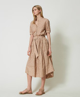 Midi skirt made from cotton poplin with animal print, covered buttons, gathered waist and matching belt.