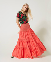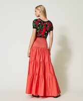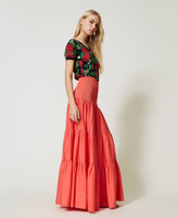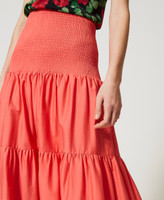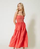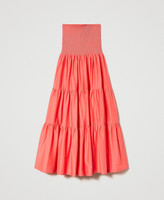 Dual use dress (can also be used as a skirt) made from flounced cotton blend poplin, unlined.