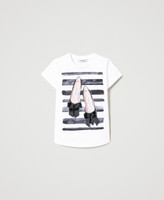 Stretch cotton jersey regular fit t-shirt with stripes and little shoe water print and appliquéd gros-grain bow.