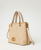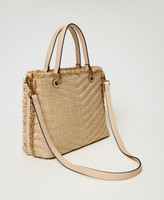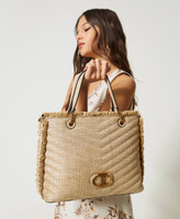 Large ‘Dreamy’ shopper made from loom-woven straw-like material, frayed edges, diamond quilting, zip closure. Twinset brings its message of kindness and welcome in all languages of the world: In Italian, 'dreamy' would be 'sognante'.