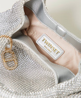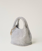 Rendez-Vous' bag made of soft tonal rhinestones knit, double handle, magnet closure, personalised with charms with chain and Oval T pendant with inset rhinestones, lining. Perfect for parties and formal occasions.
