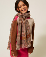 Girls' chequered scarf with contrast trims, lettering logo, frayed hem.