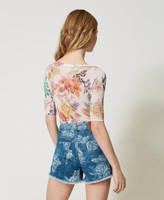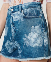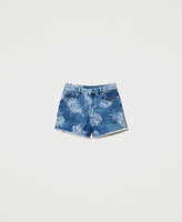Denim shorts with rose print