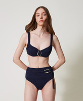 - 49% polyethylene 34% polyamide 17% elastane. Lining: 86% polyamide 14% elastane. Belt: 86% polyamide 14% elastane