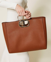 Large leather-like 'Lila' shopper with wide metal handle in the shape of the Oval T logo, magnet closure. Twinset spreads its message of welcome and kindness in all the world's languages: 'Lila' is the Sanskrit word for an action of freedom and playfulness.