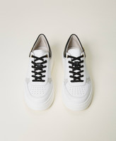 Leather platform trainers with debossed patterns, contrasting colour finishes, Oval T logo and rubber sole.
