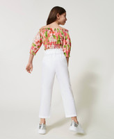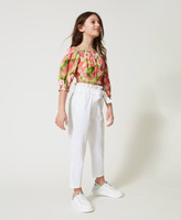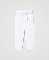 Stretch cotton trousers with Oval T logo all over, loose fit, zip and button closure, matching belt.