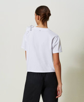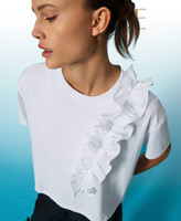 A sophisticated t-shirt that elevates any look. It is made from total white jersey with poplin ruffle motif in front. Regular fit and crew neck you can match with everything.
