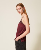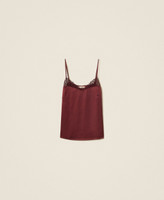 Satin top with matching colour lace around the neckline, thin shoulder straps, side slits, Oval T logo plate at the back, straight fit.