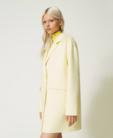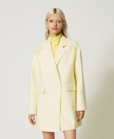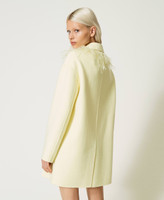 - 50% polyester 50% wool. Trim: 100% ostrich feather. Pocket lining: 100% polyester.