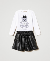 - The T-shirt is regular fit, the shorts are flared.