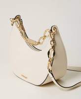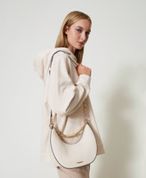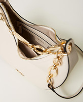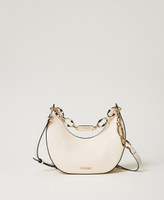 ‘Miss Twinset’ shoulder bag made from faux calf leather with removable chain handle with logo. Zip closure, adjustable and removable leather-like strap with chain section, gold-tone metal lettering logo, lining.