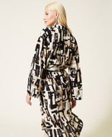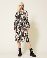 Actitude collection crêpe de Chine midi shirt dress with lettering print all over, side slits, removable belt.