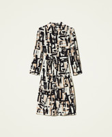 Crêpe de Chine dress with logo print