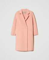 Add a precious, feminine touch to your outerwear, with this midi coat made from doubled wool blend cloth. This style has no lining and features hidden seams as per sartorial tradition. Straight fit, lapels, double-breasted closure with buttons, inset side pockets and martingale on the back. Perfect noon to night.