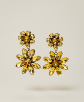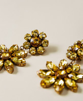 Earrings with flower-shaped glass rhinestones and clip closure.