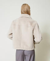 Faux fur jacket with straps