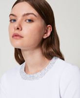 Actitude collection viscose blend jumper with sequin finishes. Crew neck, long sleeves, small cut-out on the back, fitted.