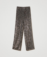 Actitude collection full sequin palazzo trousers with tulle base and side zip, inner lining.