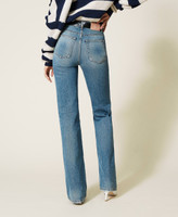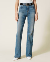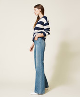 High waist cotton jeans, flared fit, with five pockets, logo label on the back.