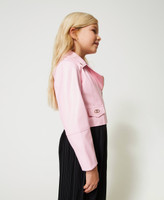 Don’t miss out on this Girl’s biker jacket made from leather-like fabric, with mock flap pocket and jewel logo plate with rhinestones. Shirt collar, asymmetric metal zip closure, tonal two-needle stitching, lining. Perfect for everyday, it will add a bold touch to an elegant dress.