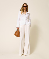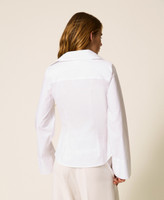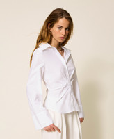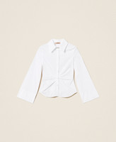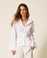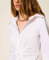 Stretch cotton poplin shirt with drape and pleats at the waist. Button fastening, long sleeves, buttoned cuffs, slim fit. This item is part of the “Archive” range, inspired by the most iconic and most loved garments from the Twinset collections.