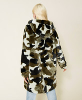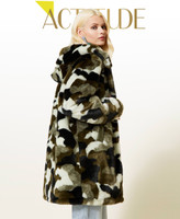 Actitude collection reversible puffer jacket, with quilted fabric on one side and camouflage long fibre fabric on the other side.