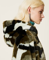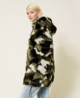 Simply wear it to get the right attitude. Reversible puffer jacket, with one quilted side and camouflage long fibre fabric pattern on the other side. Hood, dual cursor zip, welt pockets, drawstring at the bottom.