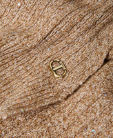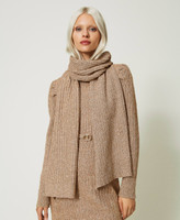 Ribbed knit scarf with lurex and sequins, metal Oval T logo.