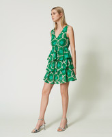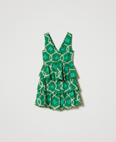 Actitude collection short sleeveless dress made from printed cotton muslin with V neck, side zip, skirt with flounces, lining.
