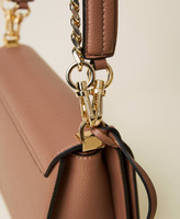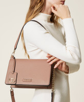 Shoulder bag with removable Oval T charm, flap and magnet closure, removable wide handle.