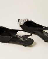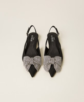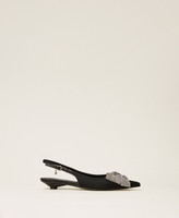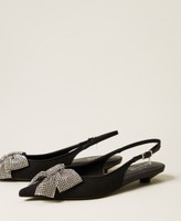 Actitude collection fabric slingbacks with maxi rhinestone bow and kitten heel.