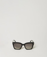 Square sunglasses in acetate with floral studs on the frontpiece, embossed logo plaque on the temples, gradient lenses and matching case.