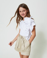 The asymmetric poplin ruffles bring volume to this girls’ short sleeve T-shirt made from stretch cotton jersey. Perfect with jeans and casual trousers, it will also be the perfect base for special occasions.