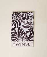 Cotton terry beach towel with botanical print and contrasting lettering logo.