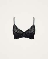 Non-padded underwire bra made from lace doubled with tulle, with scalloped borders and logo shoulder strap.