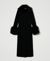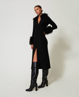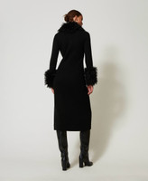 Wool blend and faux fur long cardi-dress